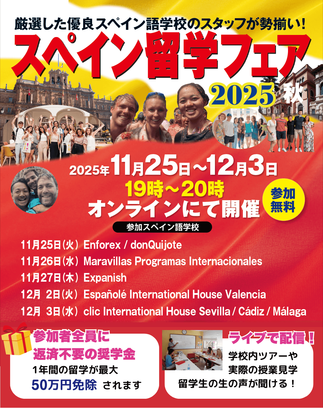 🎓最大50万円の奨学金チャンス!スペイン留学フェア2025秋まであと2週間