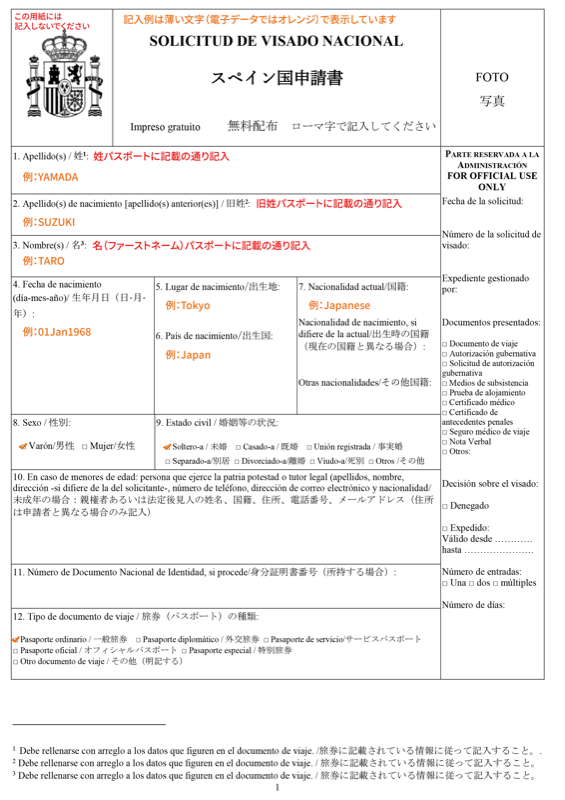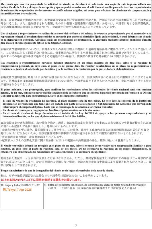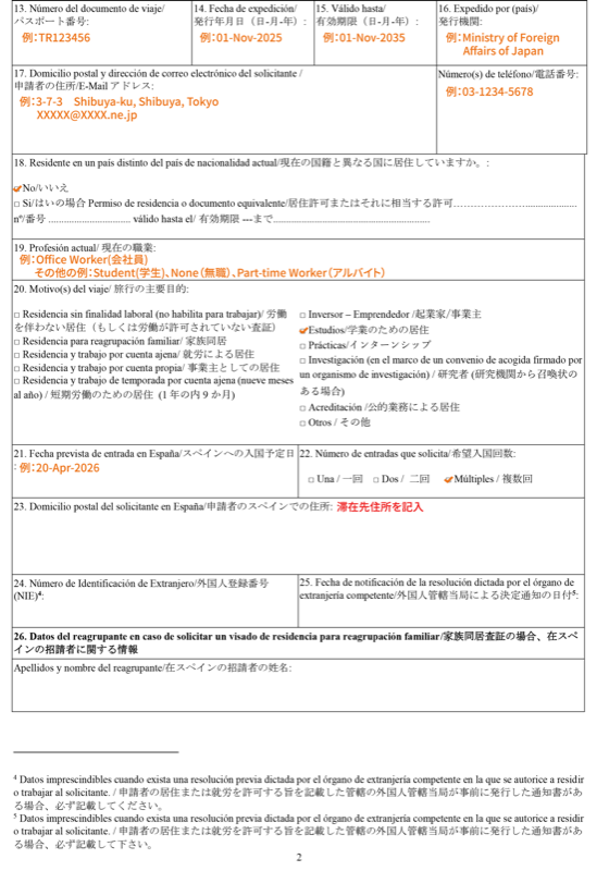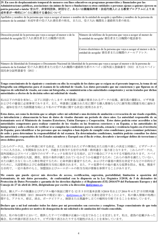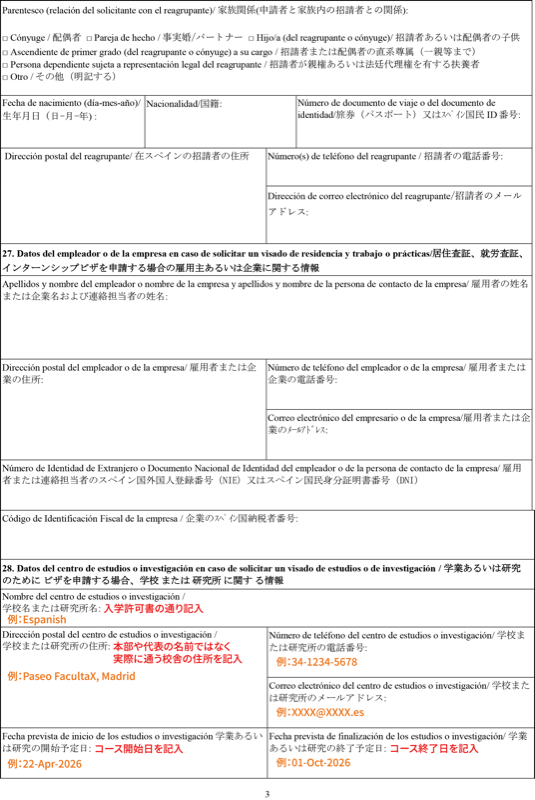 24~27の質問(「外国人登録番号」や「在スペインの招請者の姓名」など)該当しない質問項目は空白のまま提出します。