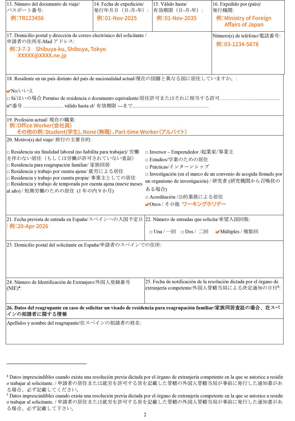 3-4. NIE(外国人登録番号)申請のための申請書EX-15 記入例